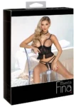 Abierta Fina Longline Bra & Panty Set Zip Black 80B/M is a sophisticated two-piece ensemble designed to combine elegance and comfort in everyday and special occasions. Crafted from exquisite, soft elastic lace, this set features velvet accents and decorative stripes, offering a visually striking look with technical precision.