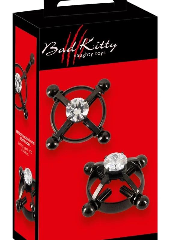 Enhance your style with the Bad Kitty Shiny Star Adjustable Nipple Jewelry – a unique and elegant accessory designed for those who appreciate refined aesthetics and modern design. This set includes two lightweight, non-piercing jewelry pieces that gently embrace the skin, providing a secure hold with an innovative four-screw adjustment system. Crafted from durable black stainless steel, each piece is accented with a sleek, central acrylic gem, offering a sophisticated and contemporary look reminiscent of fine body art.