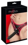 Bad Kitty Strap-On Harness L/XL Adjustable with 3 Silicone Attachments is designed for versatility and comfort, combining a sophisticated leather-like finish with robust functionality. This model includes a fully adjustable harness, suitable for sizes L to XL, ensuring a secure and customizable fit thanks to side buckle closures.