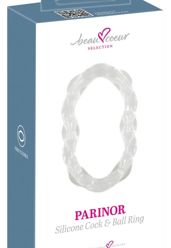 Enhance your intimate experience with the beau coeur PARINOR Silicone Dual Support Ring, expertly crafted for those seeking both comfort and versatility. This innovative accessory features a unique, highly elastic silicone design that adapts smoothly to individual needs. Its transparent finish and gentle wave texture not only provide a secure, non-slip fit, but also ensure long-lasting comfort and ease of use.