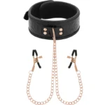 BEGME Black Edition Adjustable Collar with Neoprene Lining and Linked Nipple Clips