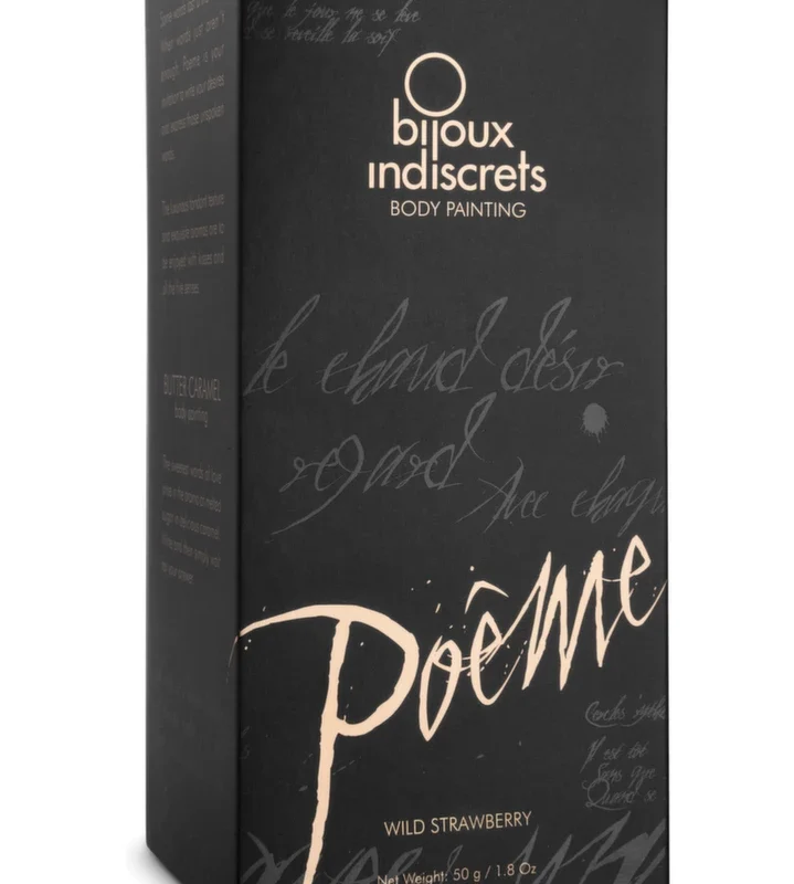 Discover a new way to express creativity and intimacy with the Bijoux Indiscrets Poeme Body Paint in Wild Strawberry. Presented in a stylish glass jar, this premium paint is designed for safe use on skin and invites playful exploration. The set features a soft, silicone-tipped applicator shaped like a classic writing feather for precise and comfortable application.