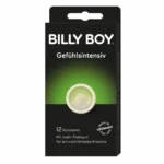 The surface is coated with a gentle lubricant and includes a reservoir, supporting smooth application and added security. The transparent finish maintains a discreet, classic appearance. Billy Boy Emotionally Intense condoms are individually wrapped for maximum hygiene, making them suitable for everyday use.