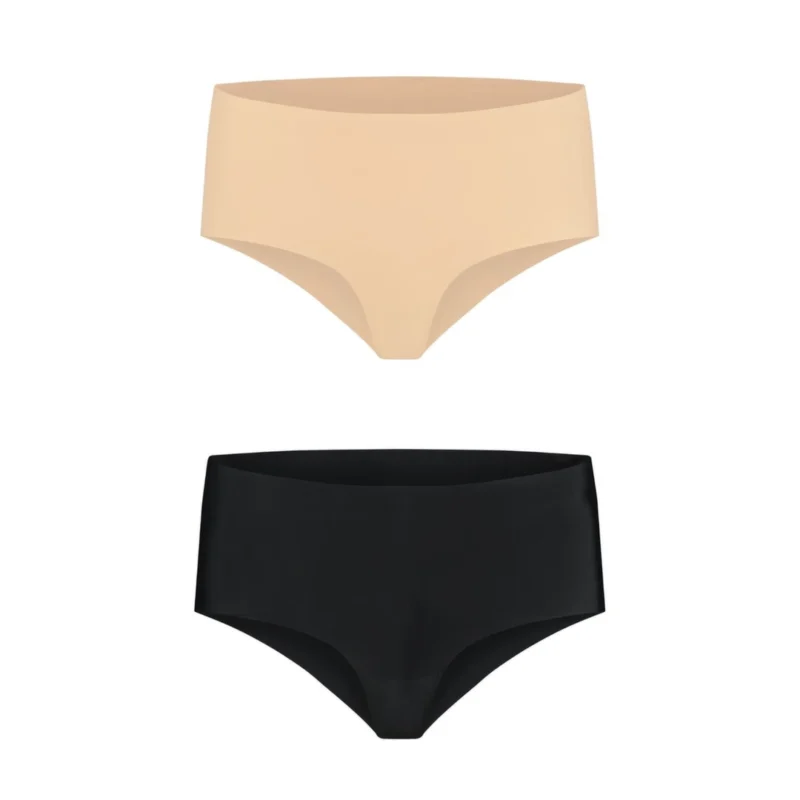 The innovative design includes a 100% cotton gusset for enhanced breathability and comfort throughout the day. Each pack contains two versatile colors—classic nude and elegant black—giving you flexible options for your wardrobe. The advanced blend of 88% polyamide and 12% elastane delivers a flexible, adaptive fit that moves with your body.