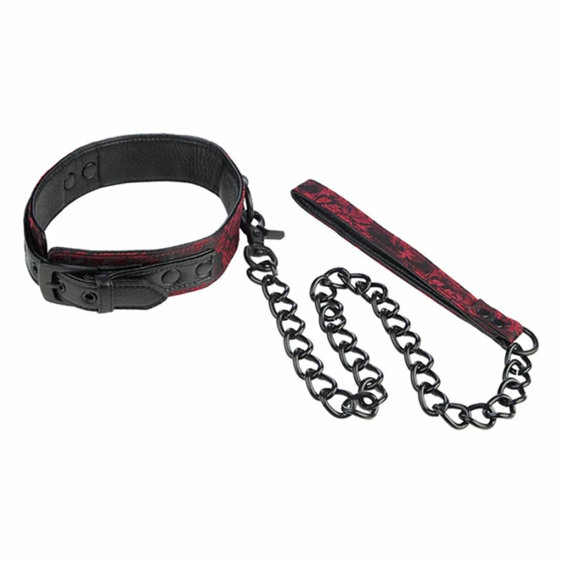 Discover a new level of sophistication in personal accessories with the CalExotics Scandal Adjustable Collar. Designed for those who appreciate the combination of style and function, this model features a luxurious dual-sided design with a plush interior for comfort and an elegant red-and-black brocade exterior for a refined look. The high-quality detachable metal chain strap ensures flexibility and ease of use, making it an ideal choice for a variety of personalized scenarios.