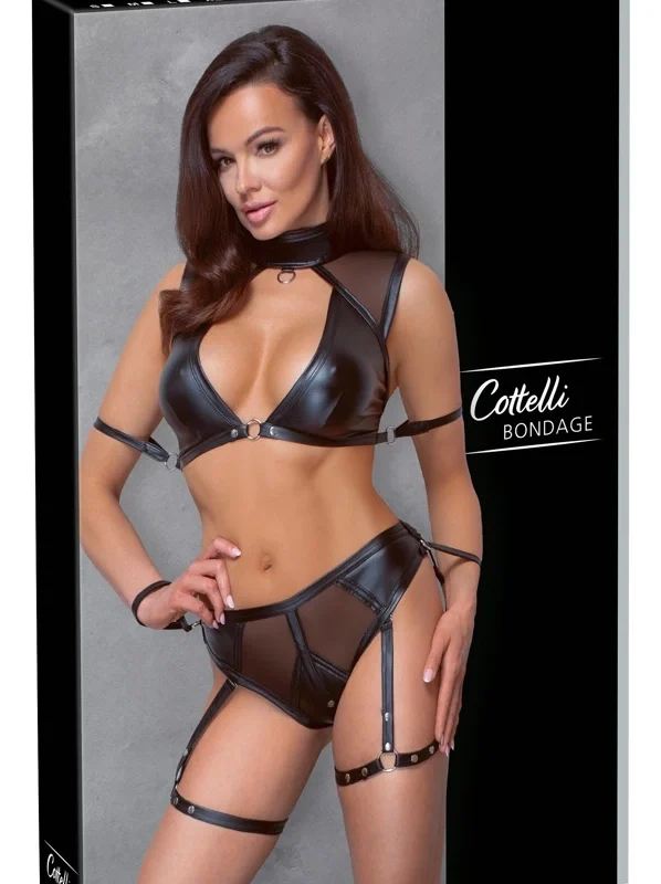 Discover the perfect blend of style and innovative design with the Cottelli BONDAGE Matt Black Top & Briefs Set, size XL. This striking two-piece ensemble is crafted from premium matte-look material, elegantly combined with transparent powernet inserts for a bold, contemporary aesthetic. Designed for those who appreciate confident fashion with technical sophistication, this set is ideal for making a statement.