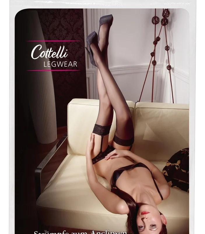 Discover the perfect finishing touch for any special occasion with these premium black stockings from the renowned Cottelli Collection. Designed to elevate your look, these stockings feature a beautifully crafted wide lace band at the top, adding a refined decorative accent to your ensemble. The high-quality, semi-sheer fabric ensures a comfortable and flexible fit, adapting gracefully to the contours of your legs.