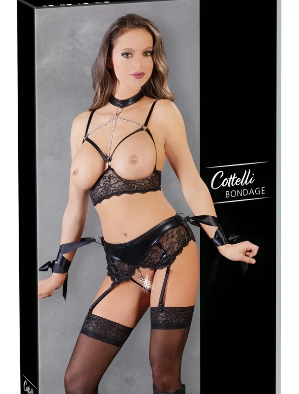 Cottelli Collection Bra Set Bondage XL with Chains and Satin Ribbons