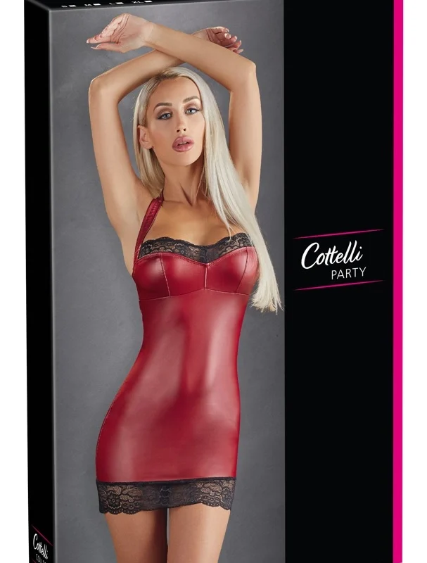 Delicate lace embellishments beautifully frame the neckline and hem, providing a refined touch and elevating the overall look. The halterneck system ensures a secure fit and adds a fashionable accent, making it perfect for special occasions or an elegant night out.