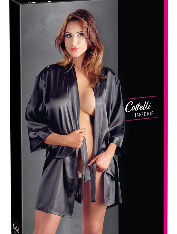 Cottelli Collection Lace Kimono S/M – Satin & Floral Mesh Robe