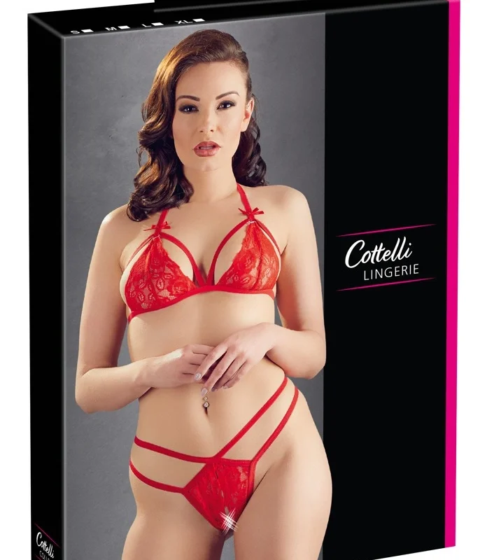 Discover elegance with the Cottelli Collection Lace Set in Red, size M.