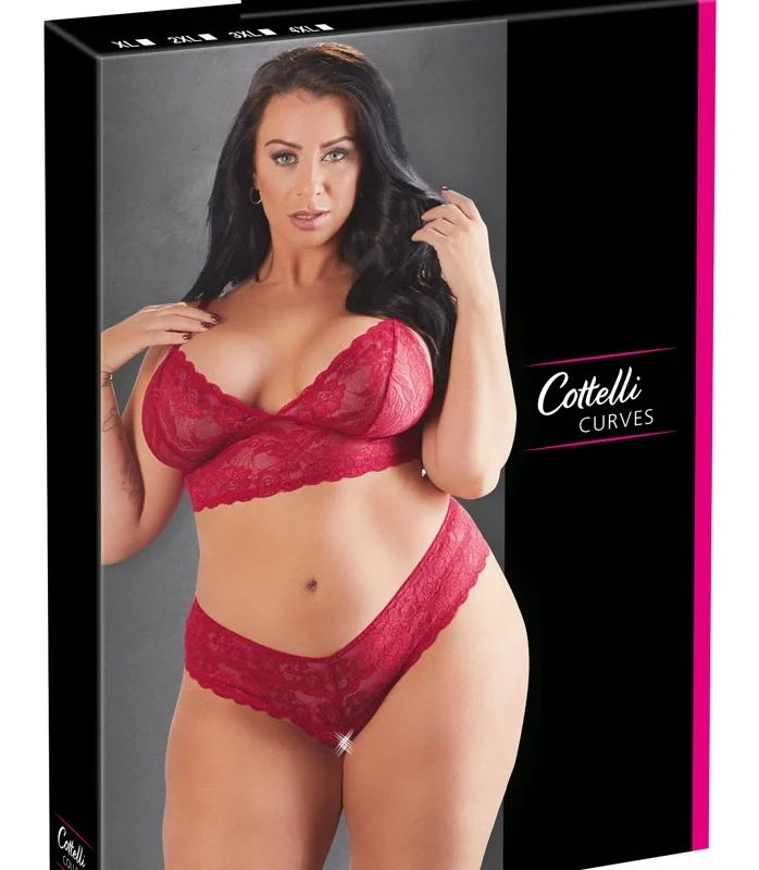 Cottelli Collection Lingerie Set Red Lace Wireless Bra & Briefs 3XL