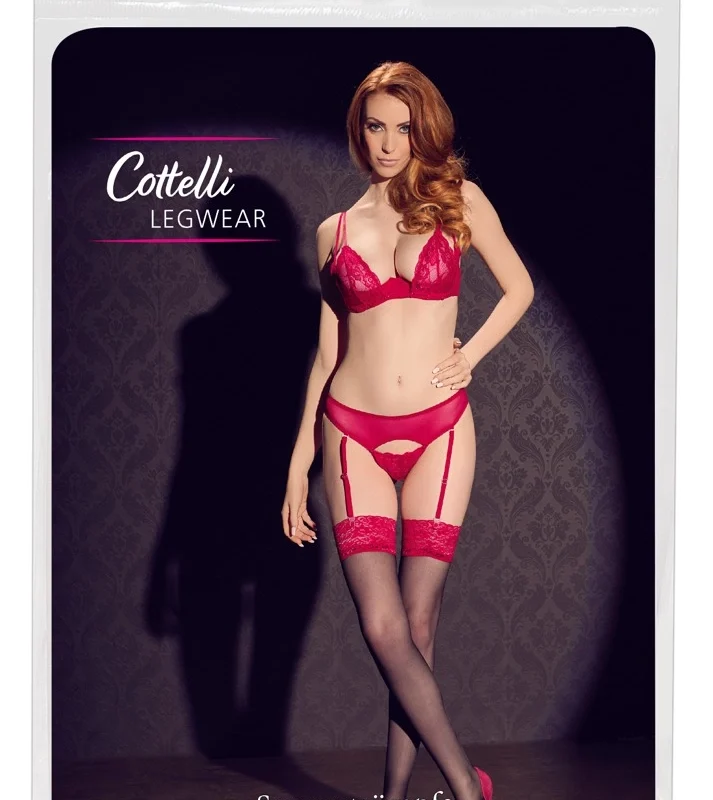 Discover timeless elegance with the Cottelli Collection Stockings Black/Red Lace Top 20 DEN – a sophisticated accessory designed for those who appreciate refined style and comfort. These striking stockings feature a captivating contrast of classic black with a vibrant red lace trim, making them a standout addition to any outfit.