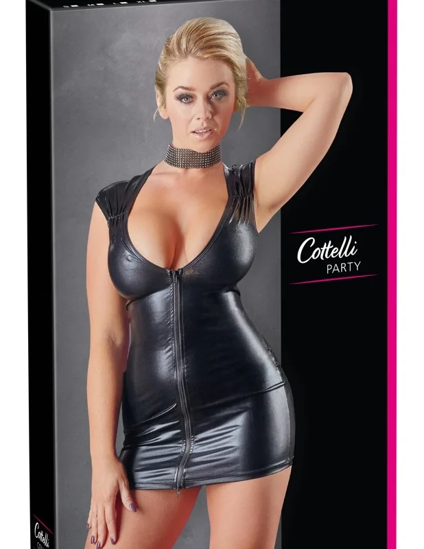 Cottelli Collection Wet Look Black Dress L with Two-Way Zipper