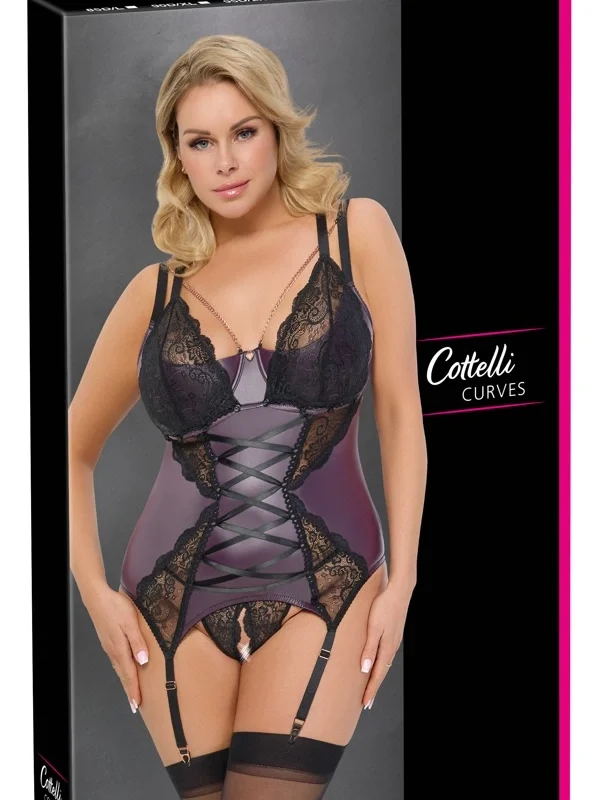 Discover striking elegance with the Cottelli Curves Basque Set XL in Dark Purple, expertly crafted for both style and comfort.