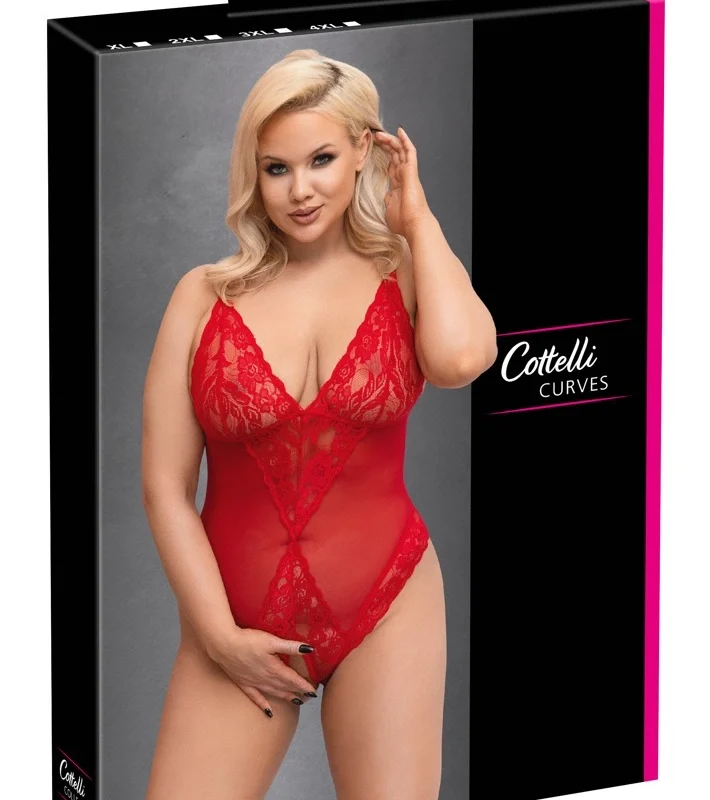 Cottelli Curves Body Red 4XL – Elegant Powernet & Lace Design