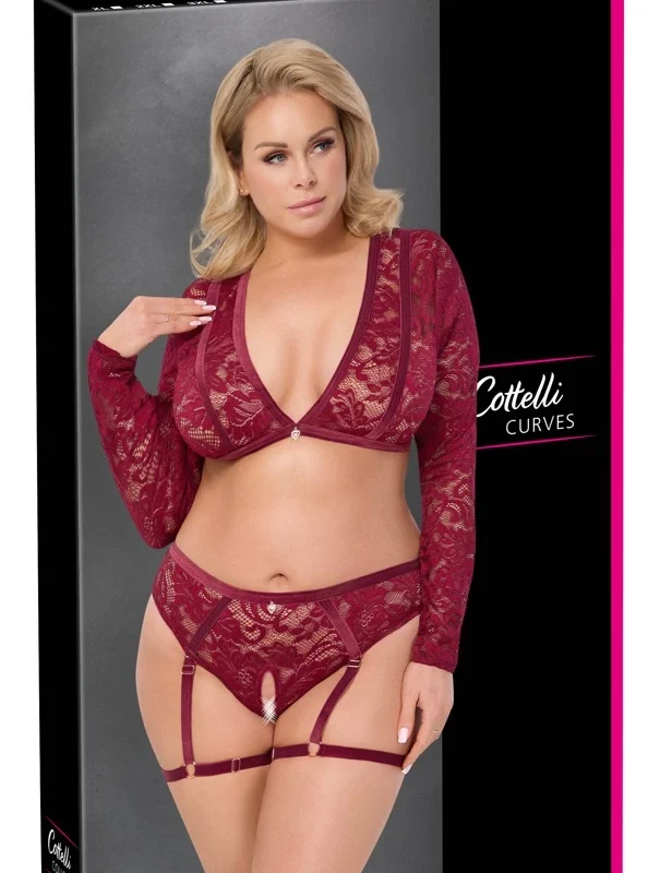 Discover the sophistication of the Cottelli CURVES Lace & Velvet Set in Red, size 2XL, designed to combine elegance with innovative comfort.