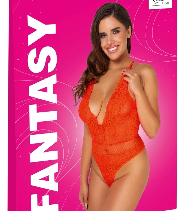 Add a splash of color and sophistication to your wardrobe with this standout piece from Cottelli Collection. The FANTASY Thong Body is crafted from high-quality, soft lace and delicate dotted tulle, creating a visually stunning look that is both comfortable and stylish. The eye-catching neon coral shade ensures you turn heads, while the intricate details, such as the decorative bow at the front, bring a touch of charm to the design.
