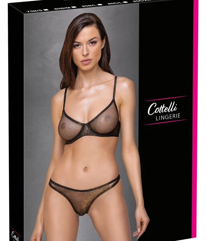 Cottelli LINGERIE Black Net Bra & String Set 75B/S with Gold Shimmer
