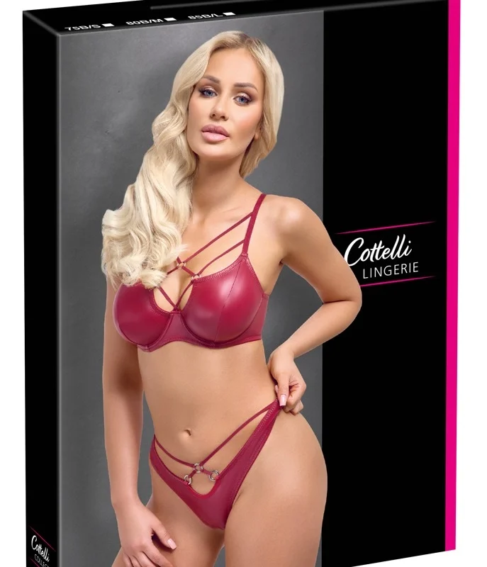 Discover the modern elegance of the Cottelli Lingerie Bra Set Red Wet Look 85B/L – a sophisticated ensemble designed to combine style, comfort, and a striking visual effect.
