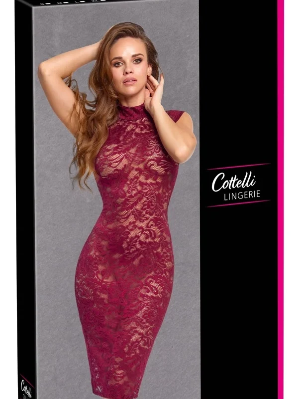 Cottelli LINGERIE Lace Dress Bordeaux Red S – Elegant Sleeveless Knee-Length