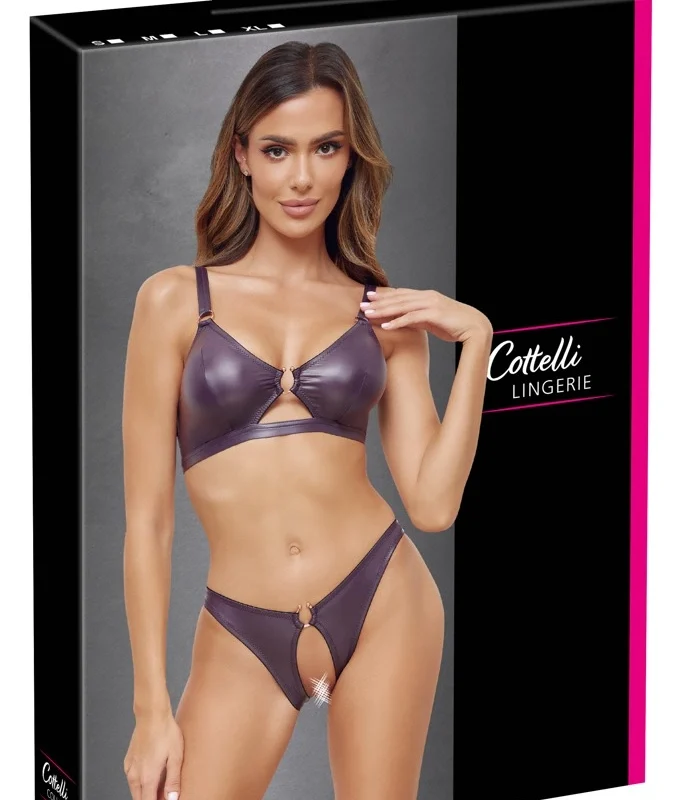Discover the allure of the Cottelli Lingerie Wetlook Bra & Brief Set in purple, size M – a sophisticated ensemble designed for comfort and style.