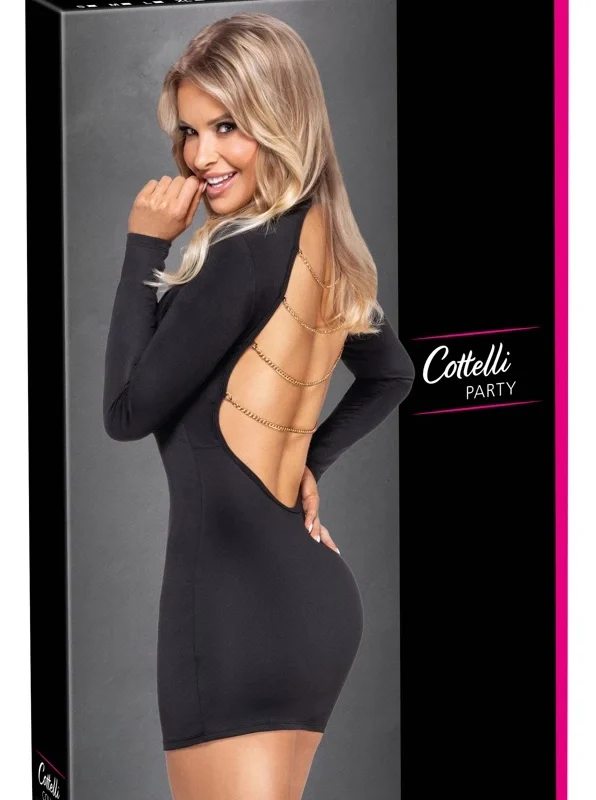 Cottelli PARTY Mini Dress with Gold Chains, Black, Size S
