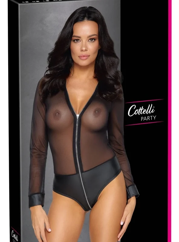 Experience modern fashion with the Cottelli PARTY Powernet Long-Sleeve Bodysuit XL – a dynamic blend of transparent powernet mesh and sophisticated matte-finish elements for a striking, contemporary look.