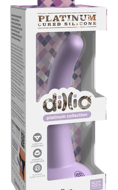 Dillio Platinum Curious Five Silicone Model Purple 14.6 cm is a precision-engineered intimate device crafted for those seeking both high-quality materials and ergonomic design. This model features a beautifully curved, classic silhouette that tapers gently towards the tip, providing optimal comfort and adaptability during use. The innovative suction base adheres firmly to any smooth surface, offering versatile, hands-free operation and compatibility with most strap-on harness systems.