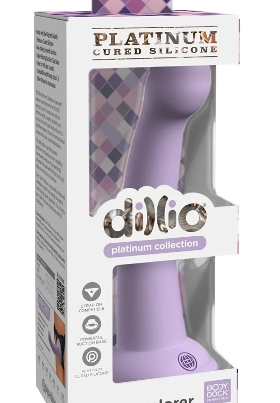 Dillio Platinum Secret Explorer Intimate Device Purple 17.2cm is a premium, anatomically designed accessory crafted for those seeking advanced quality and safety. Designed by Dillio, this model features a sophisticated curved silhouette with a pronounced tip, offering ergonomic handling and versatile use. The vibrant purple surface is made from top-tier, platinum-cured silicone, ensuring both durability and a velvety, skin-friendly texture.
