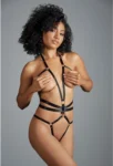 Enhance your wardrobe with the Dreamgirl Izabel Adjustable Strap Open Teddy, designed to showcase a modern and sophisticated style. This contemporary one-piece features strategically placed straps that accentuate the silhouette, creating an eye-catching, geometric look. Crafted from high-quality materials, it offers a comfortable fit for a variety of body shapes thanks to its adjustable strap system throughout. The open design is complemented by a chic G-string back, making it a versatile addition to any collection of fashion-forward lingerie.