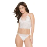 Discover refined elegance and versatility with the Dreamgirl Longline Lace Bralette & Adjustable Crotchless Panties Set.