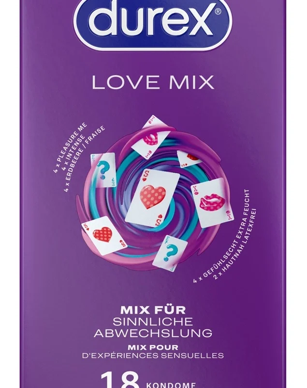 Discover the Durex Love Mix Pack: a premium selection of 18 high-quality Durex protective barriers, all in a convenient pack that offers diversity, reliability, and the trusted performance you expect from Durex. This exclusive set brings together five unique types, featuring a combination of flavors and textures to suit a variety of preferences and ensure maximum comfort and ease of use.