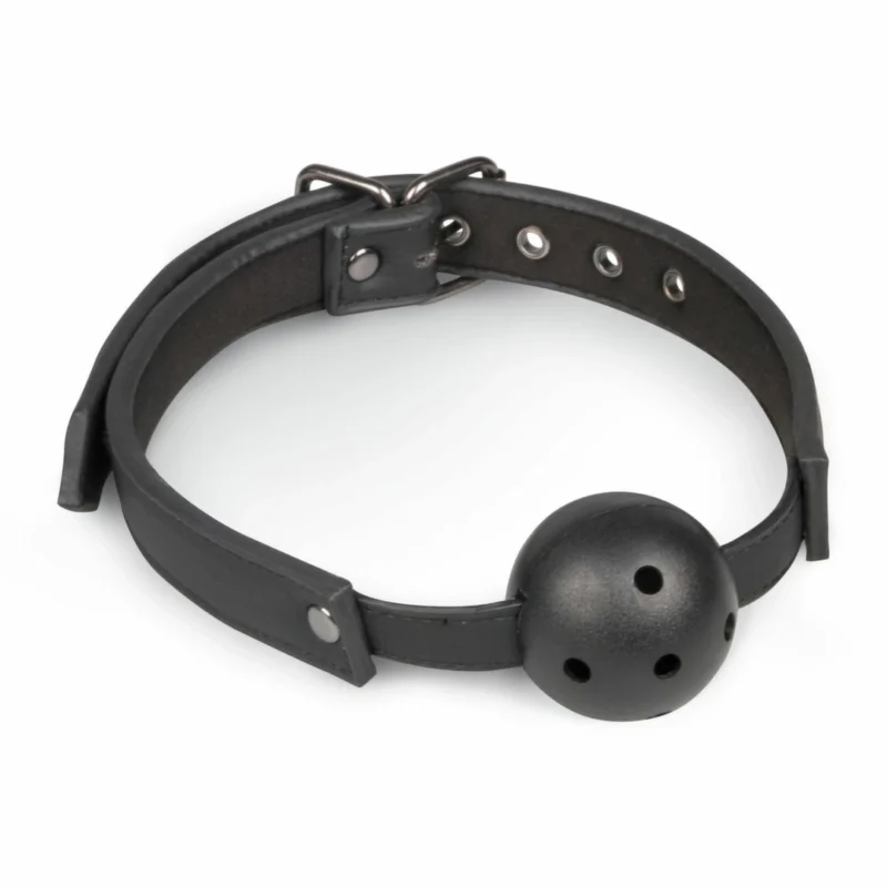The PVC ball features integrated air holes, ensuring safe and easy breathing throughout use. Its anatomic design supports a secure fit while maintaining comfort, even during extended sessions. The strap is crafted from durable faux leather and lined with soft foam, minimizing pressure and providing a gentle touch to the skin.