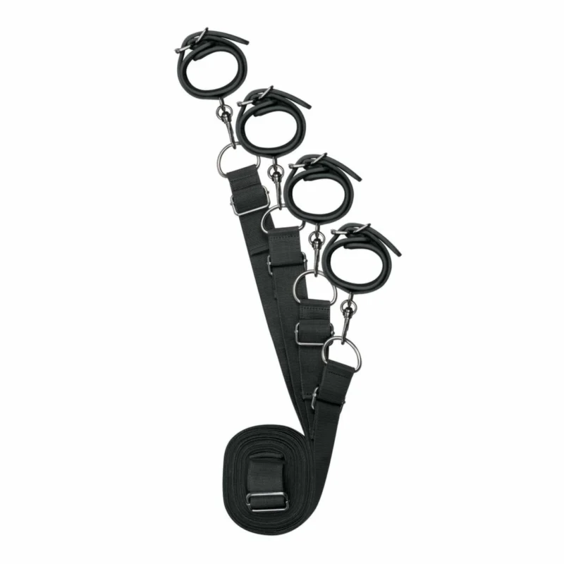 The restraint system is crafted from robust, high-quality faux leather, ensuring both durability and comfort. The interior of each cuff is lined with soft foam padding, providing a gentle touch to the skin and allowing for prolonged use without discomfort. Each cuff can be individually adjusted for a tailored and secure fit, offering flexibility for various body types.