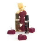 - Set includes: 1 stylish gold pouch, 3 aromatic candles, and 1 bottle of strawberry-scented lubricant (30 ml).