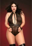 Discover the Fantasy Lingerie Curve Mesh Teddy – a sophisticated blend of high-neck stretch mesh and faux leather, crafted specifically in an inclusive plus size fit. Designed in classic black, this model features a chic high-neck silhouette with enhanced back coverage and a slightly shallower V-neckline for a confident, comfortable fit.