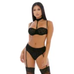 - Two-piece set: underwired bra with choker collar and matching thong panty