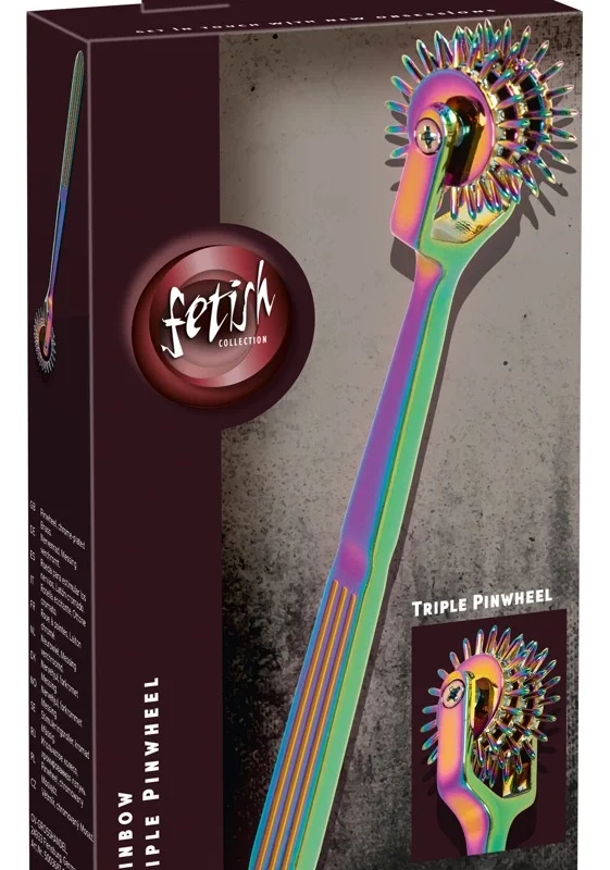 Discover a new dimension of tactile exploration with the Fetish Collection Rainbow Triple Pinwheel. This advanced sensory tool is crafted from durable, high-quality metal and features a stunning rainbow finish that stands out in any collection. The triple-wheel design, each wheel adorned with precisely engineered fine pins, is engineered to deliver a wide range of sensations depending on the pressure applied, making it ideal for those seeking to diversify their sensory experiences.