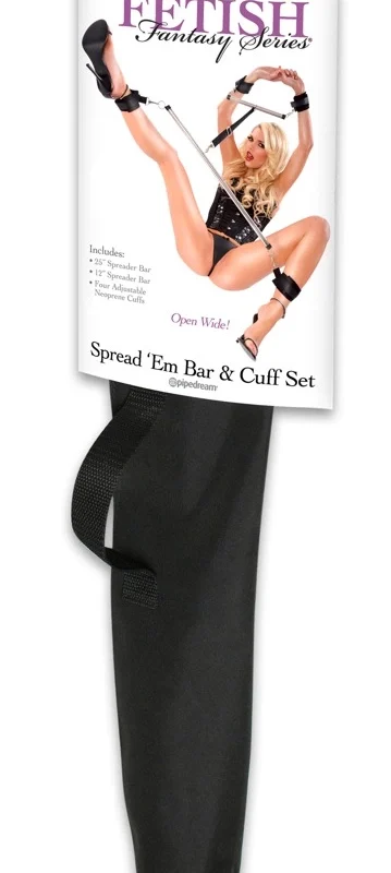 Discover a versatile restraint solution with the FFS Spread’em Bar Set, designed for those seeking secure and customizable positioning. This set includes two robust metal bars—one measuring 31 cm and the other 64 cm—offering flexibility for both upper and lower body placement. The bars are equipped with soft, adjustable cuffs crafted from high-quality polyamide, ensuring comfort and stability during use. Each cuff fastens easily with strong hook-and-loop closures, accommodating a wide range of wrist and ankle sizes.
