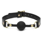 Discover a new level of sophistication with the Fifty Shades of Grey Bound to You Adjustable Faux Leather Ball Gag, a premium accessory from the official Fifty Shades of Grey collection curated by E L James. This elegant model has been designed with both style and comfort in mind, integrating a medium-sized silicone sphere and luxurious faux leather strap with antique gold metal accents for a refined look.