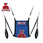 For enhanced practicality, the set is equipped with four sturdy hangers, each fitted with metal snap hooks for secure attachment and ease of use. The generously padded foot supports, measuring 11 cm in width, provide stable and comfortable positioning, while the black cushion (23 x 38 cm) offers extra support, making the system adaptable for a variety of needs.