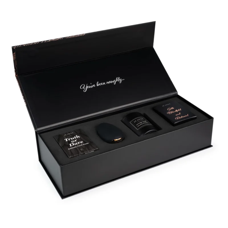 Discover the ultimate package for those seeking a refined and exciting evening at home. The Je Joue Gift Set Naughty Collection combines elegance and innovation, offering a sophisticated selection of accessories designed for exploration and relaxation. This beautifully crafted set includes a limited edition rose gold Mimi intimate massager, a luxurious silky restraint and blindfold, a scented massage candle with a delightful Ylang Ylang & Mandarin aroma, and an engaging Truth or Dare card game—all housed in an elegant gift box.