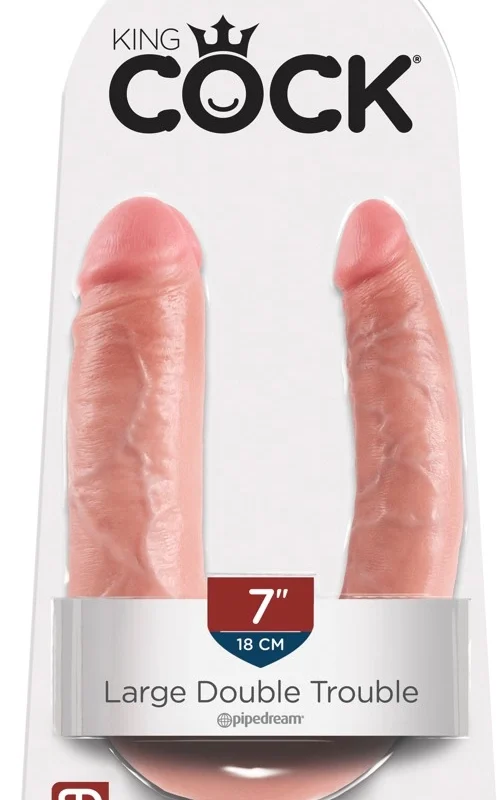 Experience versatile functionality with the King Cock Double Trouble, a dual-ended anatomical model designed for those seeking diverse applications. Crafted from high-quality PVC, this model features two distinct anatomical terminations, each detailed with a uniquely contoured surface and pronounced structure for a lifelike aesthetic. Its flexible shaft adapts to a variety of uses, making it suitable for solo or partnered scenarios.
