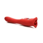 Discover the innovative Kiss and Tell Pro Dual-Ended Vibrator in a striking red shade, expertly crafted for versatile intimate relaxation. This advanced model features two functional ends: a flexible, vibrating shaft and a uniquely designed tip that mimics gentle kissing and licking motions, all wrapped in premium, body-safe silicone.