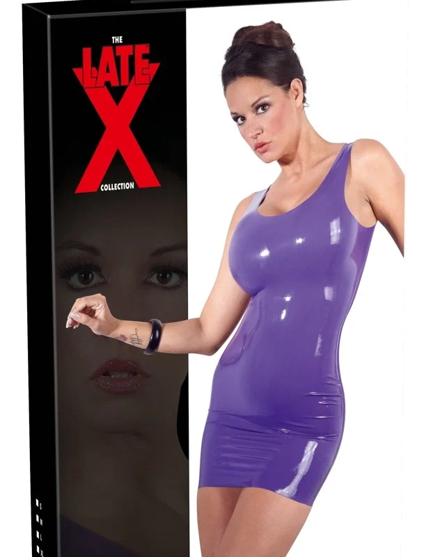 Step into bold elegance with the LateX Mini Dress in a vibrant purple shade, designed for those who appreciate modern style and a flawless fit. This sleeveless mini dress embraces the silhouette with a second-skin effect, accentuating the figure and creating a striking visual impact. Crafted from high-quality natural rubber latex, this model is perfect for fashion-forward individuals looking to make a statement during special occasions or themed events.