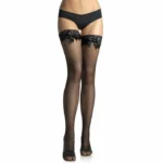 • Model: Black Fishnet Tights with Lace Top & Bow Detail