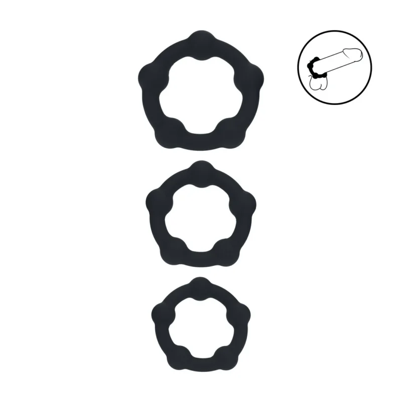 Upgrade your personal wellness routine with this premium LEVELZ set, featuring three versatile and body-safe silicone rings in sleek black. Designed for optimal comfort and adaptability, each ring comes in a different size (small, medium, large) to suit various preferences and needs—whether used singly or combined for tailored support. The beaded design ensures a secure fit and adds a refined touch, while the high-quality silicone material is hypoallergenic, flexible, and easy to clean.