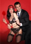 - Set includes: velvet cuffs (pair), feather tickler, satin mask, play dice