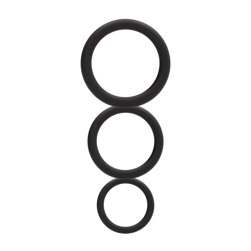 This set features three anatomic rings of varying diameters, ensuring a tailored fit for individual needs. Each ring is crafted from a flexible, body-safe material that provides a comfortable experience while supporting prolonged use. The smooth, round surface ensures ease of application and removal, and the rings are suitable for use with latex protection products.